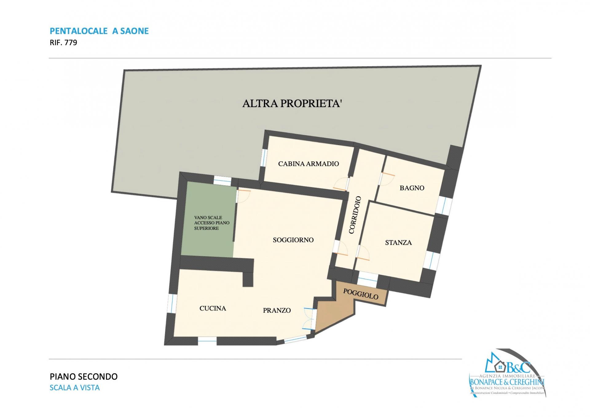 L’accesso principale avviene dal piano terra, tramite un giro scale comune a una sola altra unità immobiliare (attualmente allo stato grezzo).