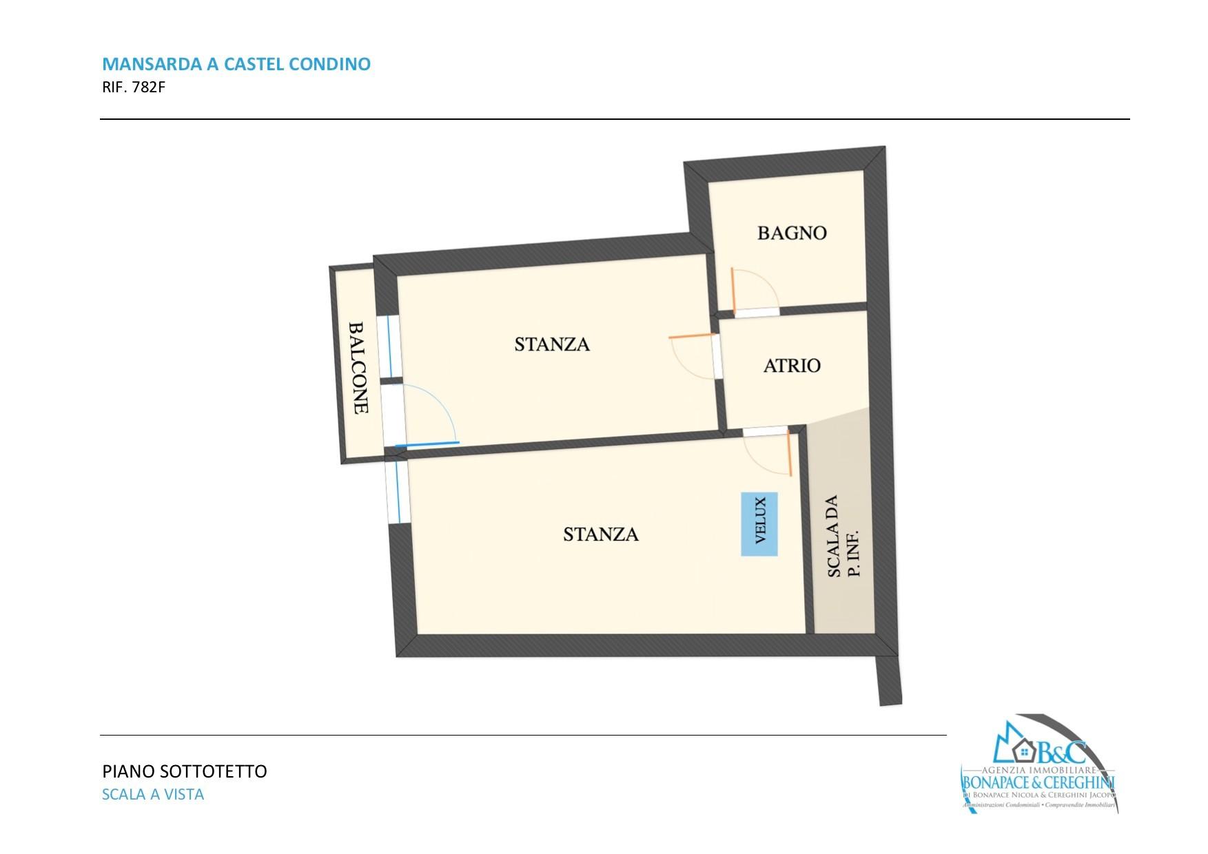 A Castel Condino, in posizione rialzata e panoramica con splendida vista sulla valle e sulle montagne circostanti, proponiamo in vendita una meravigliosa mansarda in tipico stile montano.
